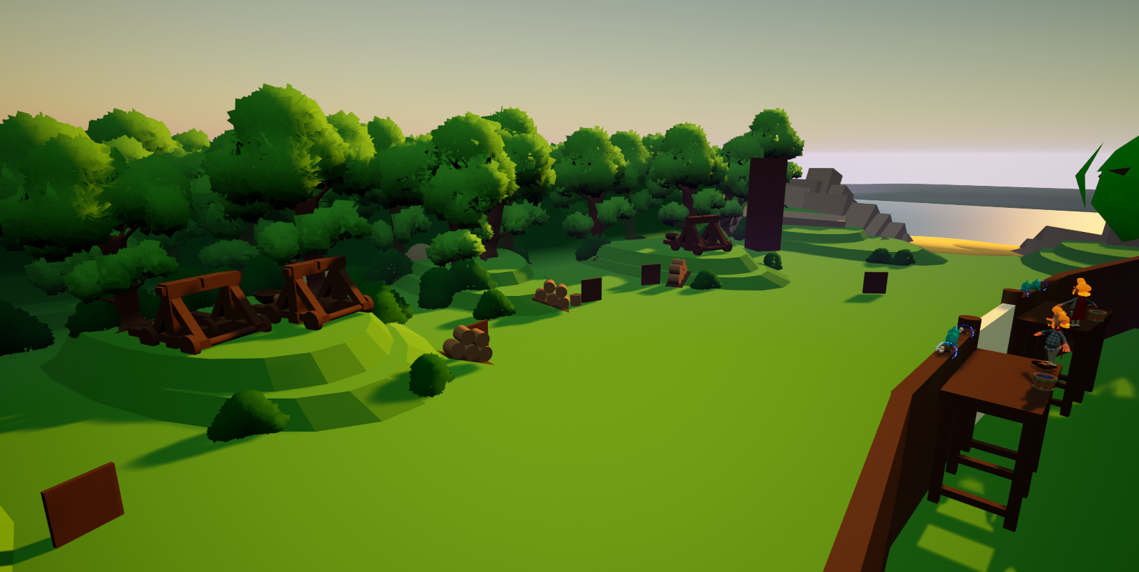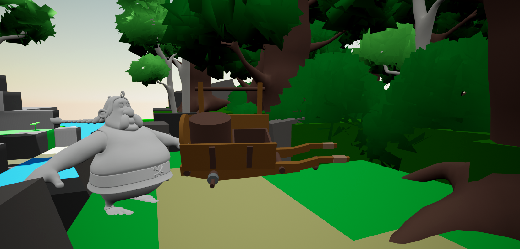 During the second sprint, I undertook my first gameplay production task: creating a slingshot that players can grab with both hands—one on the handle and the other on the spoon. By pulling and releasing the spoon, players can shoot stones to defend against Romans and interact with environmental elements. I implemented a sight on the slingshot to allow players to visualize where they are aiming, as it was nearly impossible to hit enemies at a distance without it.